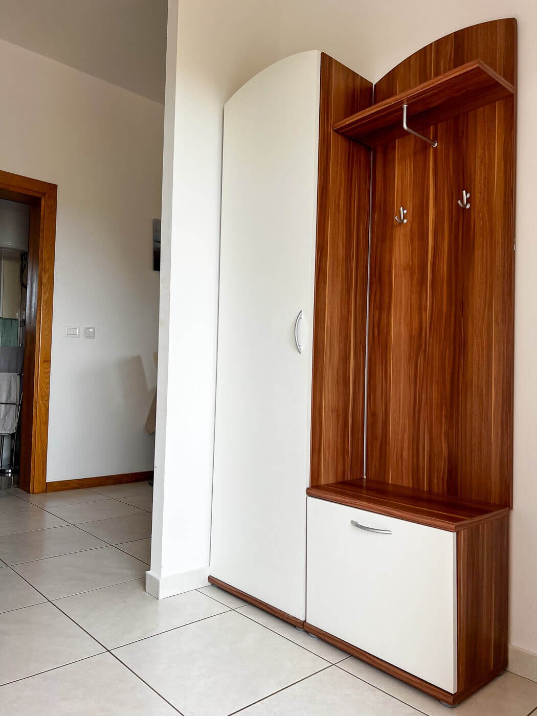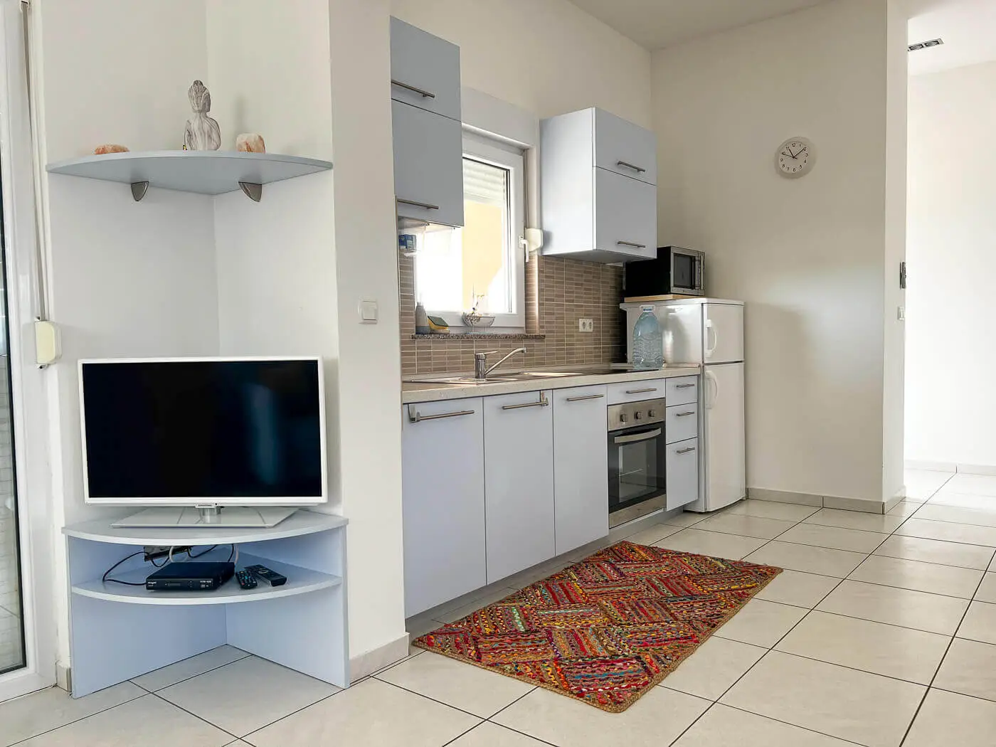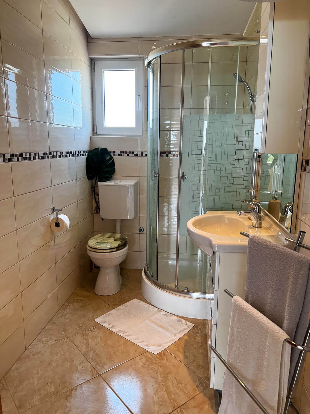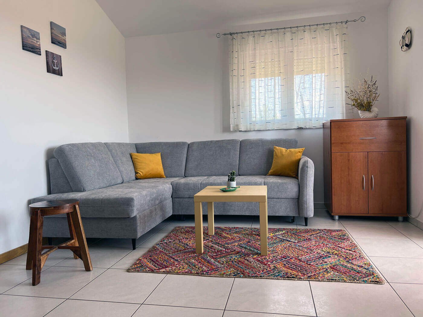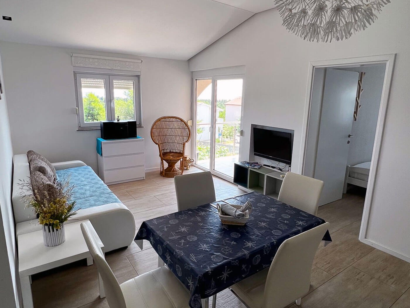 Elegantný apartmán s dvomi priestrannými spálňami, útulnou obývačkou, moderným WC, kúpeľňou a plne vybavenou kuchyňou. Tento štýlový apartmán je dokonalým miestom pre relaxáciu a pohodlie počas vášho pobytu na ostrove Vir v Chorvátsku. S vkusným dizajnom a praktickým vybavením vám poskytuje maximálny komfort a súkromie. Užite si nezabudnuteľnú dovolenku v tomto apartmáne s dvomi priestrannými spálňami, kde sa perfektne spája štýl, pohodlie a kvalita. Oslňujúca terasa vám zároveň umožňuje vychutnávať vonkajšie prostredie a príjemné okolie. Vzdialenosť apartmánu od pláže je 10 min. pešo