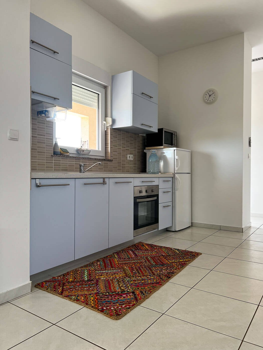 Elegantný apartmán s tromi priestranými spálňami, útulnou obývačkou, moderným WC, kúpeľňou a plne vybavenou kuchyňou. Tento štýlový apartmán je skutočným rajom pre vašu dovolenku na ostrove Vir v Chorvátsku. S nadčasovým dizajnom a komfortným vybavením vám poskytuje dokonalé pohodlie a súkromie. Terasa vám umožňuje relaxovať s výhľadom na okolitú prírodu a vychutnávať si vzácne chvíle oddychu. Užite si nezabudnuteľnú dovolenku v tomto apartmáne s tromi priestrannými spálňami, ktorý kombinuje štýl, luxus a kvalitu, a poskytuje vám skvelý domov pre vaše dobrodružstvá na ostrove Vir.